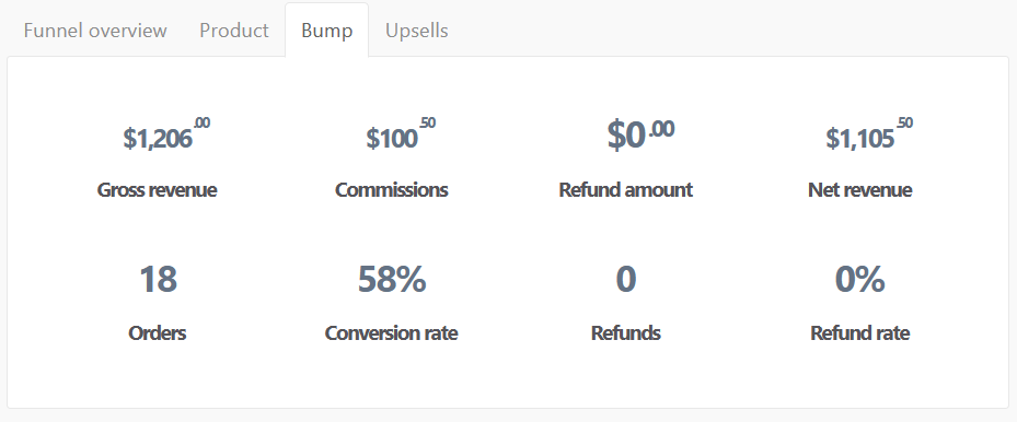 Then during checkout, 18 of the 31 also checked the bumb box and added the $67 offer so they paid $167 each.