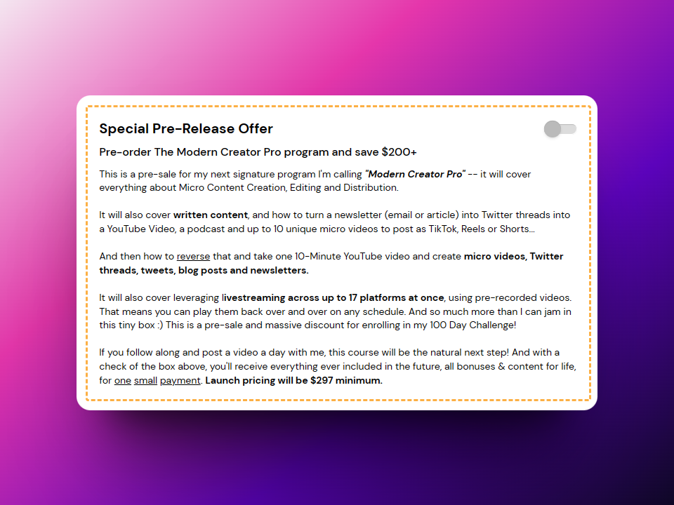 You get to BYPASS all of that stuff and sell with a couple of paragraphs — and in some cases, a single sentence!